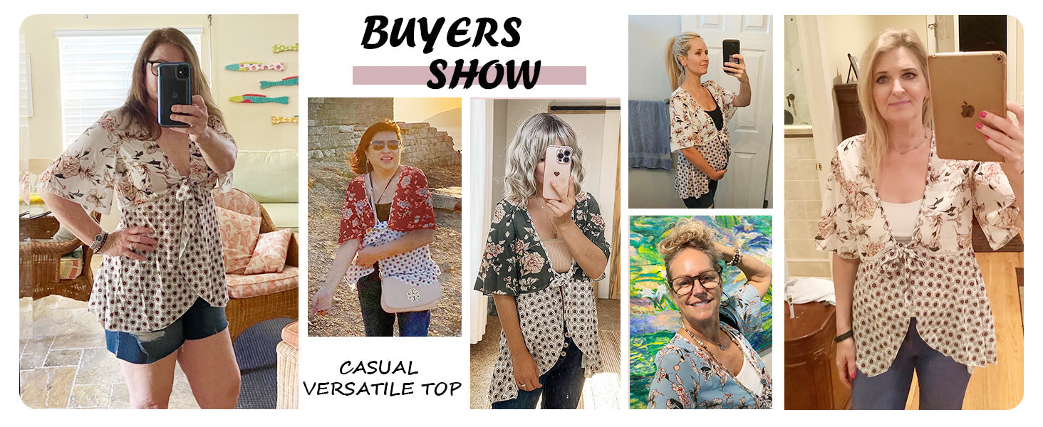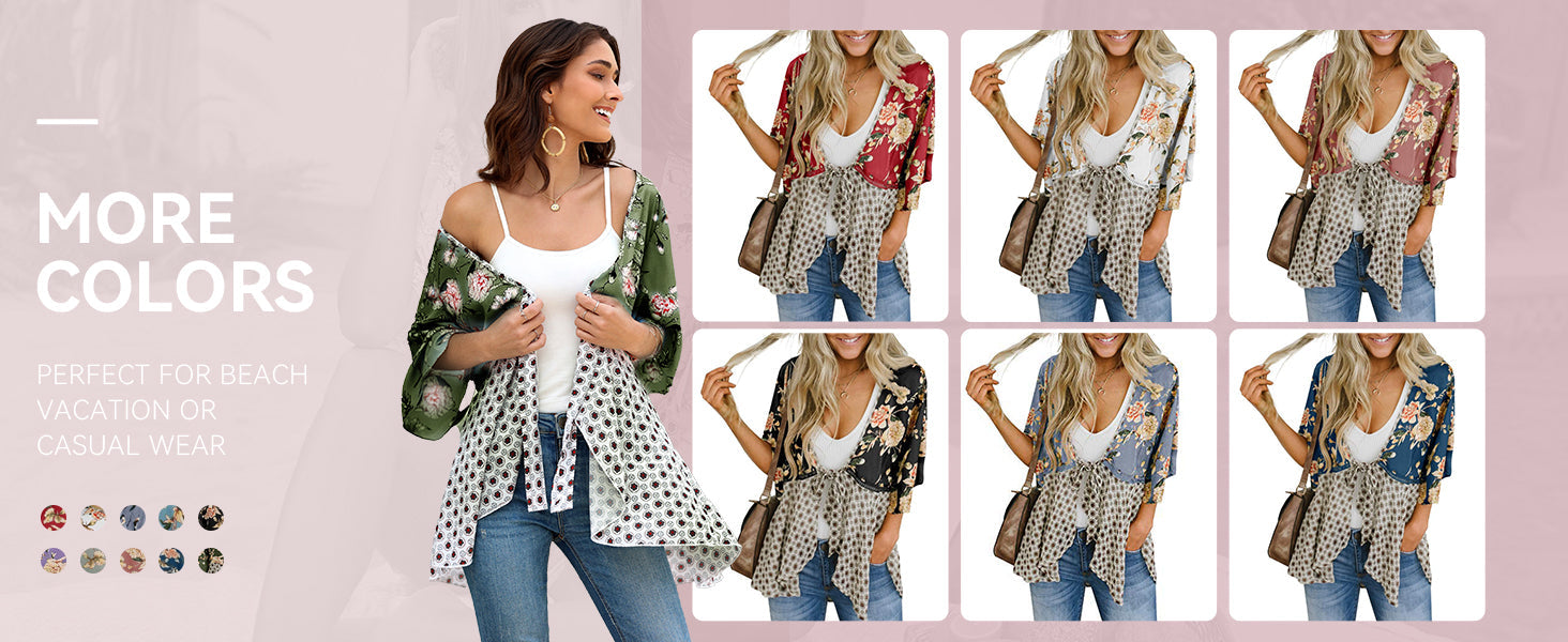 A cooling chiffon light cardigans is a must-have piece in hot summer days! You can tie a front knot or just untie the knot to make another fashion. The versatile peplum tops can be wear as boho cardigans, chic coverups for bathing suits or casual loose tie knot tops.